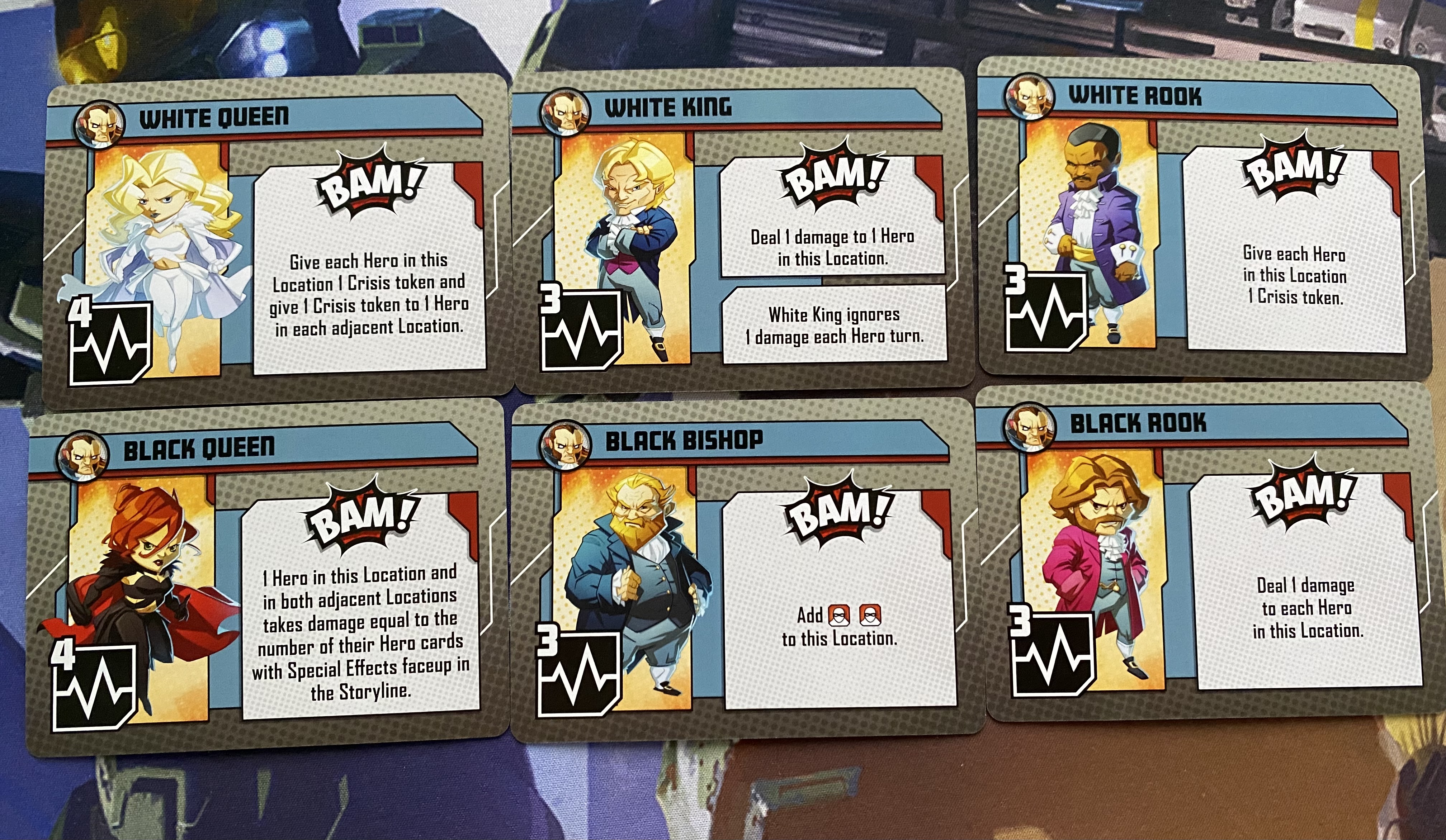 Locations, tokens, bases, blue/gold board, Accelerated Villain Challenge